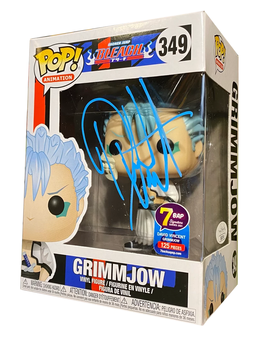 From the BleachΒ anime and comic series comes thisΒ Grimmjow Pop! Vinyl Figure!Β This is a limited editionΒ variant of the figure that has been signed by voice actor David Vincent in blue ink and has been JSA Authenticated.Β Limited one of 125 pieces.
