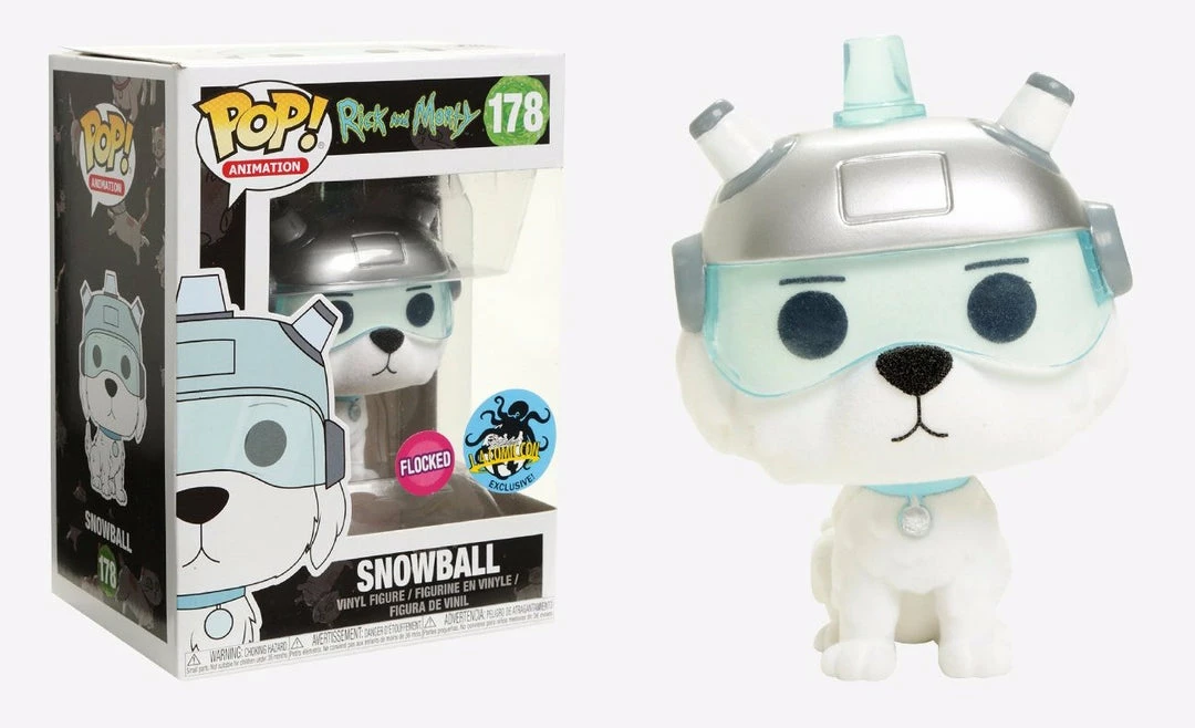 From the Rick & MortyΒ television show comes this Exclusive flocked SnowballΒ Pop! Vinyl FigureΒ from Funko! A flocked figure has a coating on it that feels like fur. This was a limited-edition, exclusive release from Stan Lee’s Los Angeles Comic Con.