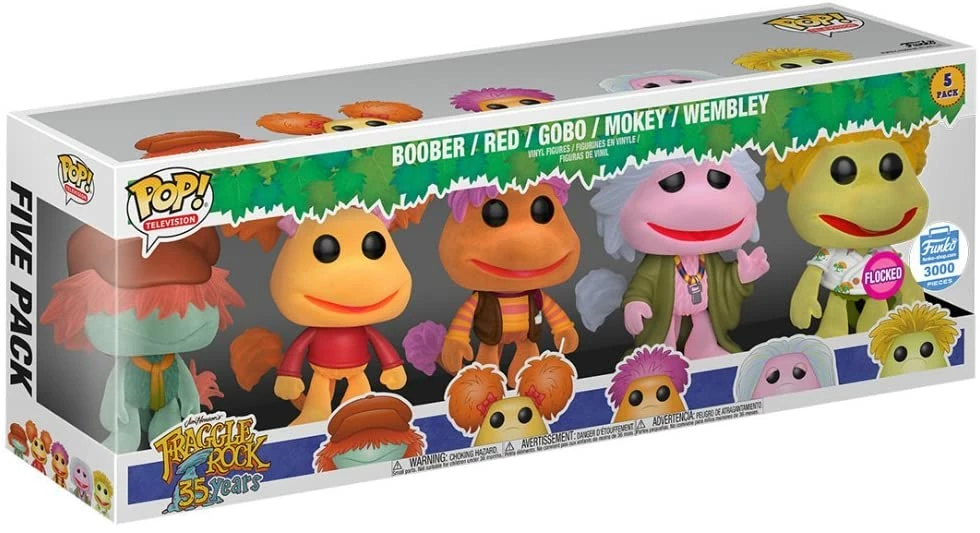 From the Fraggle RockΒ temevision series comes this special flocked 5-pack of Boober, Red, Gobo, Mokey, and Wembley Pop! Vinyl Figures! This is a limited to 3000 pieces worldwide exclusive figure set.