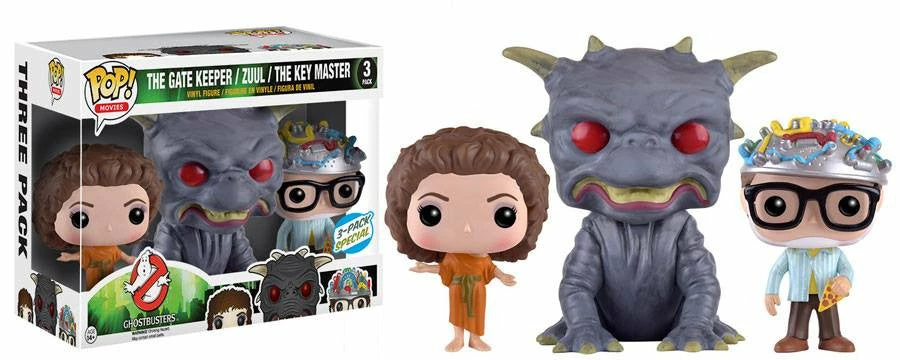 Paying homage to the GhostbustersΒ movies comes this 3-pack ofΒ Pop! Vinyl Figures from Funko depicting The Keymaster (Louis), The Gatekeeper (Dana), and Zuul (6″ figure)!Β Β