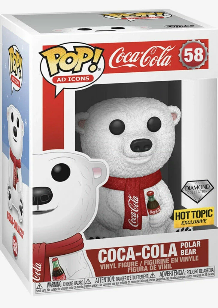 From the commercials that we love comes this Diamond Collection glitter Coca-Cola Polar Bear in a Pop! Vinyl Figure by Funko! This is a limited edition exclusive figure.