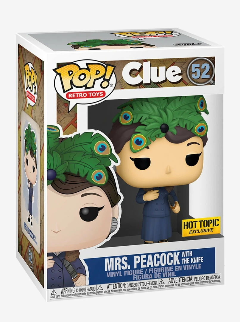 From the classic retro toys from theΒ 80’s game CLUE comes this Mrs. Peacock (/w The Knife) Pop! Vinyl Figure! This is a limited edition exclusive figure.