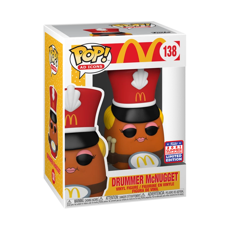 From McDonald’s comes this Drummer McNugget in a Pop! Vinyl Figure by Funko! This is a San Diego Comic Con/Funkon 2021 limited edition shared exclusive figure.