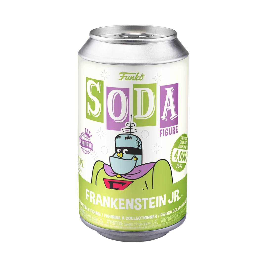 From the SodaΒ series comes thisΒ Frankenstein Jr. Vinyl Figure from Funko! Cans are sealed and chosen at random. 1 in 6 chance to receive the metallic chase variant.